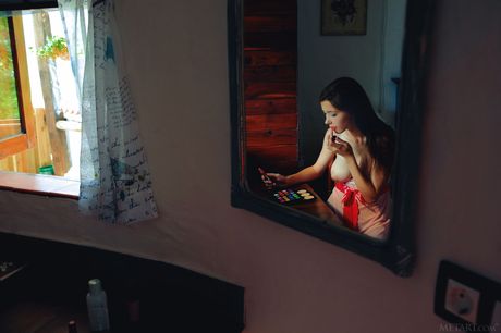 Ukrainian peach Mila Azul fingers her pussy after getting naked on a bed