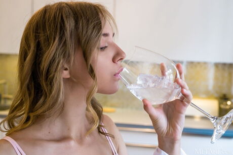 Ukrainian venus Oxana Chic removes her lingerie and poses nude in the kitchen