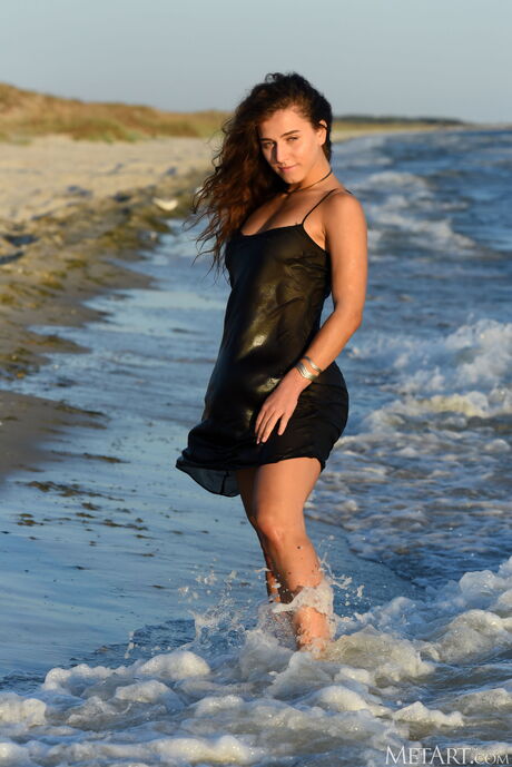 Winsome teen Kailyn goes naked while walking on a beach by herself