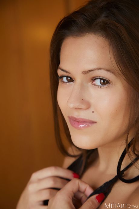 Winsome teen Serina Gomez removes a bodysuit to get naked on a bed