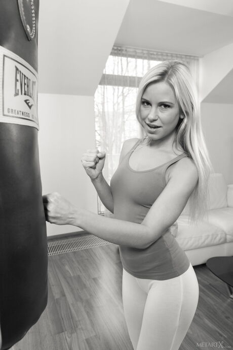 Blonde teen Dido A fingers her pussy after getting naked in a yoga studio