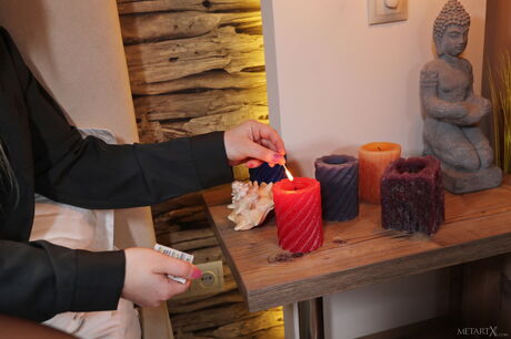 Charming teen Nikki Hill fingers her pussy after removing stockings