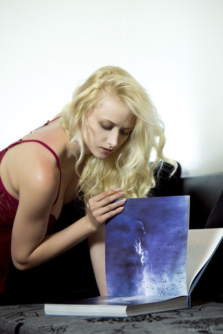 Lovely teen Nika N fingers her pussy after getting naked on a sofa