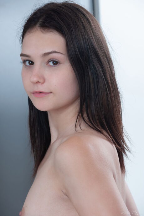 Petite teen Matty takes off everything before fingering her pussy in the kitchen
