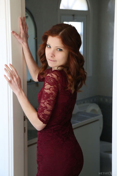 Redheaded teen Emanuelle fingers her pussy after getting naked on a bed