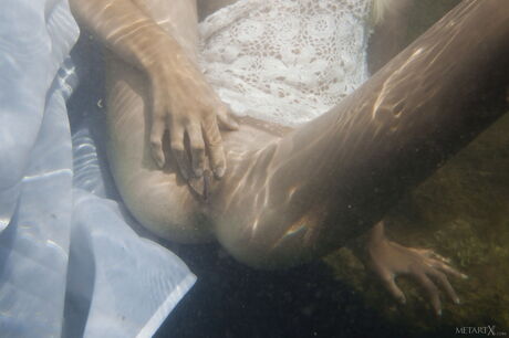 Sexy blonde Nika N fingers her pussy while underwater in a bathtub