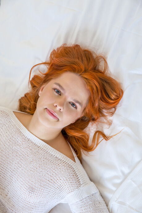 Sexy redhead Alaya removes her bikini and masturbates on the bed