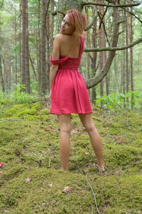 Sexy teen Shannan goes naked in a forest before masturbating
