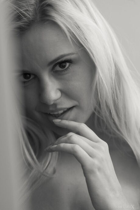 Skinny blonde teen Dido A fingers her pussy after removing her bikini