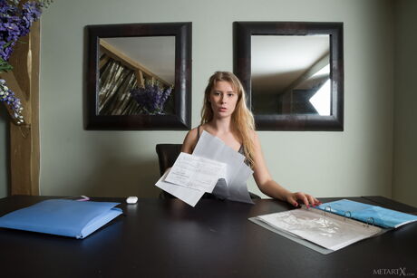 Young blonde Casey strips down before fingering her pussy on a sofa