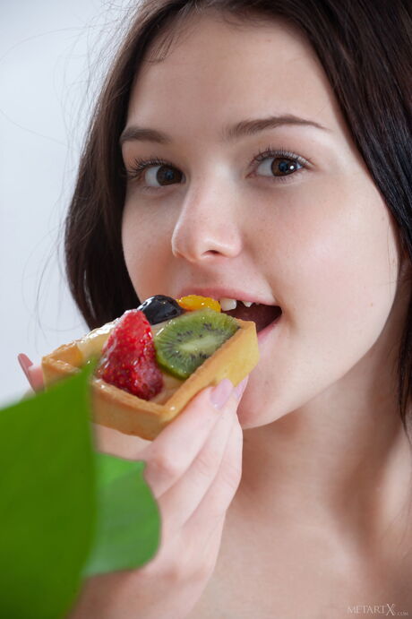 Young brunette Matty goes nude while baking cookies in a kitchen