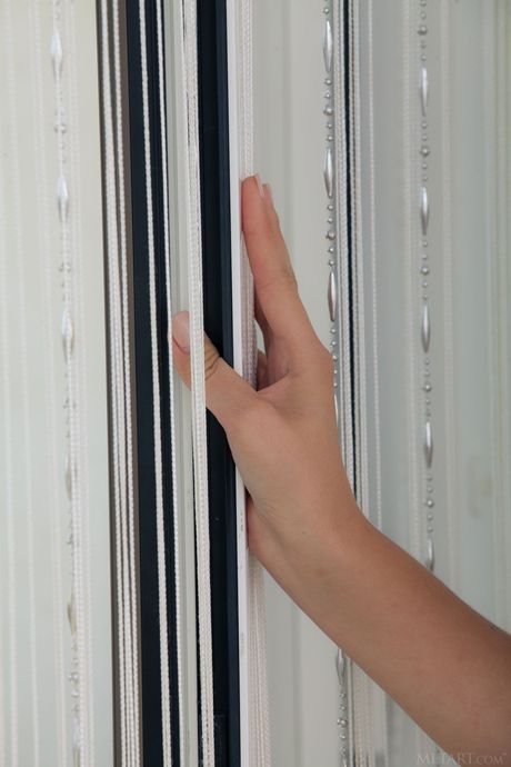 Young blonde Adagio removes a bra and panty set to get bare naked