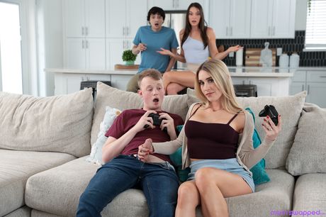 MILFs Katrina Colt and Sarah Taylor have a foursome with their stepsons