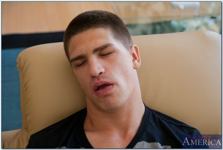 Asian cougar Katsuni seduces and bangs a young man on a couch