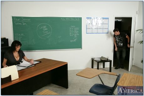 Big-titted teacher Alia Janine gets her mature pussy fucked in class