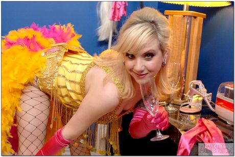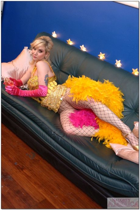 Blonde babe in stockings Pinky Lee showing off her nice ass