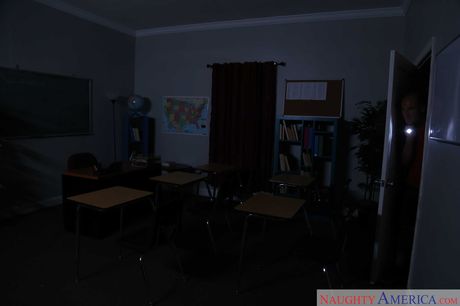 Blonde coed Tiffany Watson strips and shows her big ass in the classroom