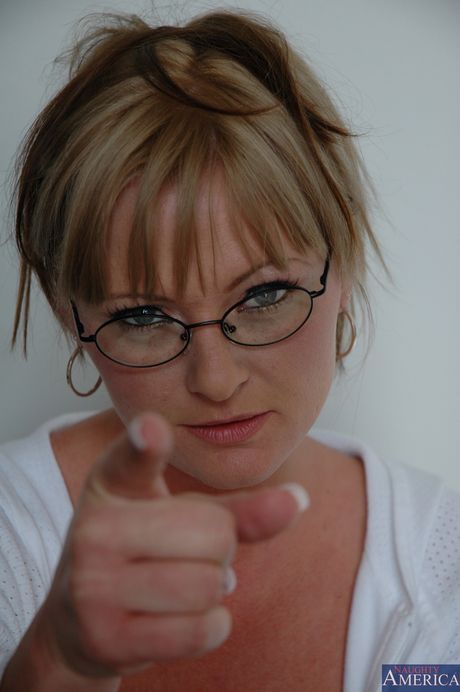 Blonde MILF Allison Kilgore has sex with a younger man in her classroom