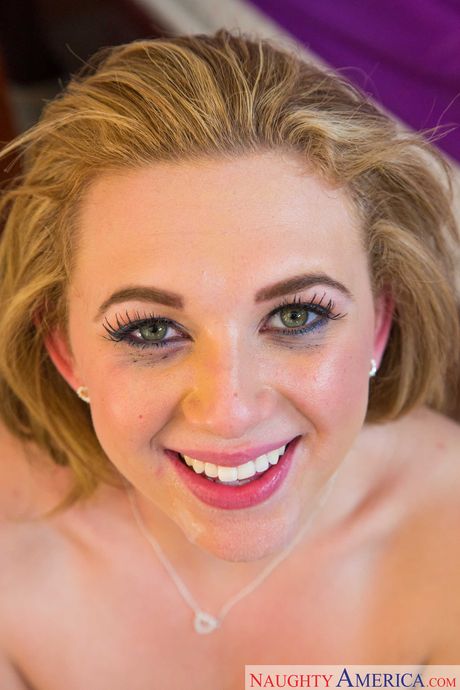 Blonde model Brooke Wylde gives a blowjob and gets cum on her big tits