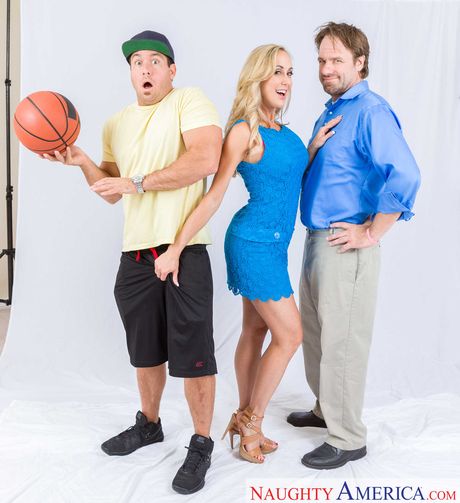 Blonde pornstar Brandi Love has sex with her stepdad in a living room