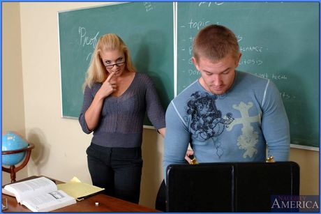 Blonde teacher Heidi Mayn has sex with a student in her classroom