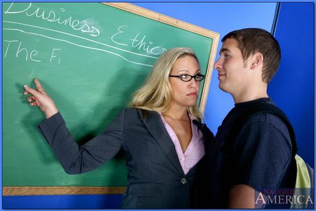 Blonde teacher in glasses Jaycie Lane gets her pussy screwed