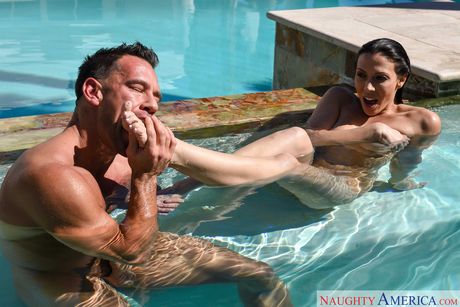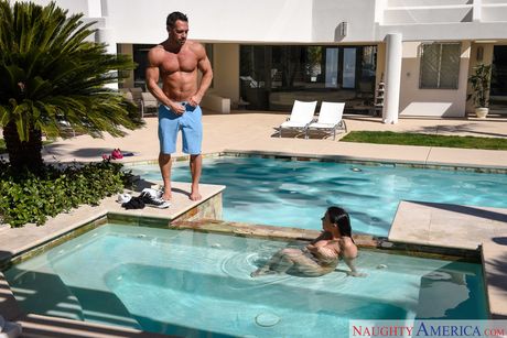 Brunette babe Rachel Starr gets her big ass licked and her pussy fucked poolside