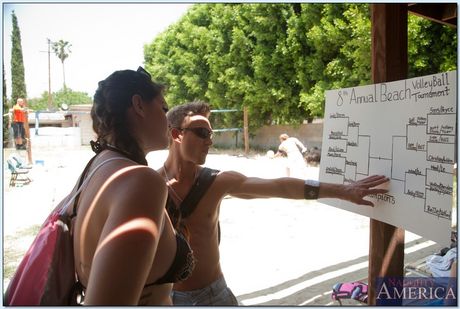 Brunette babe with big tits Alison Tyler strips and shows her curves