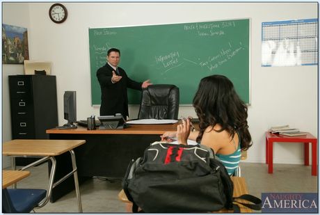 Brunette coed Tia Cyrus fucking in glasses and getting facial