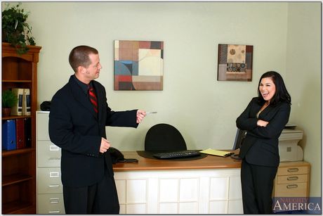 Brunette MILF Ashley Blue gets her hairy pussy licked and dicked in the office