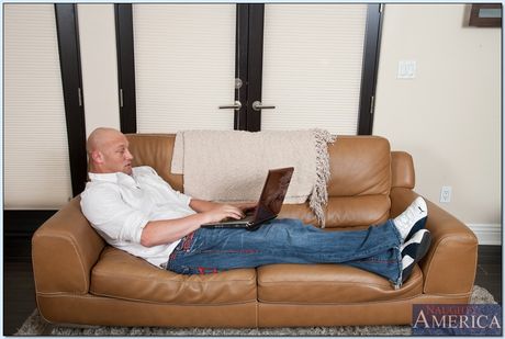 Brunette MILF Lezley Zen strips and shows her tattooed body in a solo