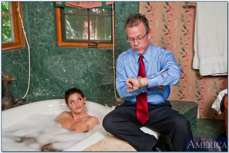 Brunette MILF Madelyn Marie gets her big ass fucked in the bathroom