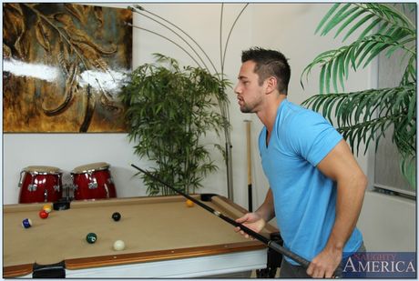 Busty brunette cougar Diana Prince seduces a young man in a black dress