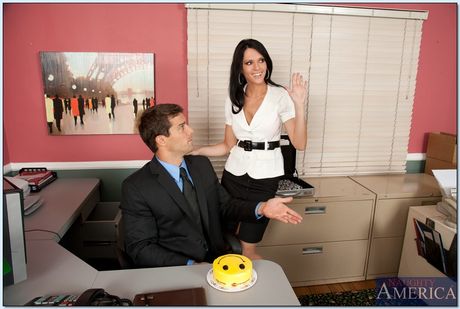 Busty brunette Jennifer Dark has sex with her boss in his office