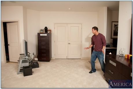 Busty brunette Nikki Benz strips and shows her tattooed body