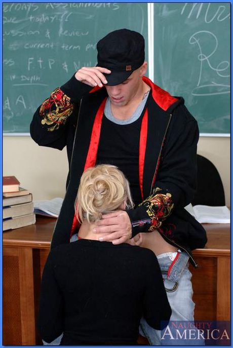 Busty teacher in stockings Carolyn Reese gets her twat nailed in class
