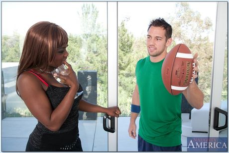 Ebony cougar Coco Pink gets her big tits and pussy fucked by a white boy