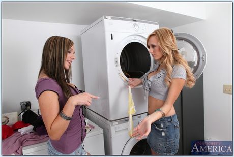 Lesbian blondes Destiny Dixon and Brett Rossi licking pussies in laundry room