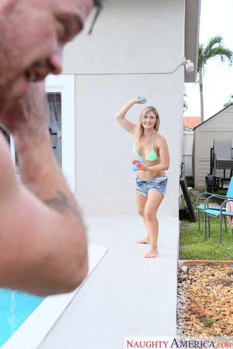 Ligh-haired teen Addison Lee gets her pierced pussy licked and screwed outdoors