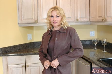 Mature blonde Danielle Frost strips and shows her big ass and tits