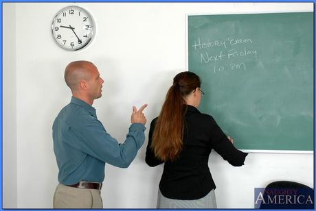 Mature teacher in glasses Christie Lee and her student Selena Steele stripping