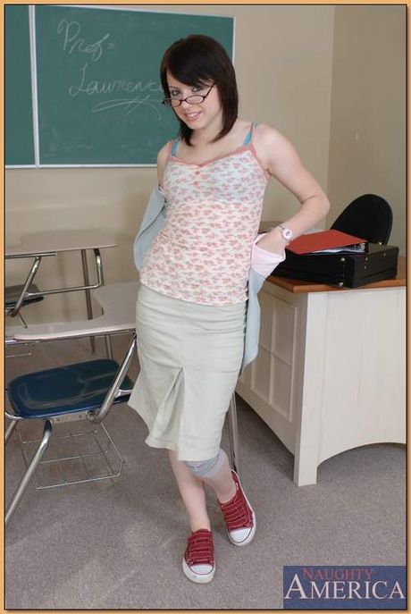Petite coed Lexi Belle strips and shows her tiny tits and tight pussy
