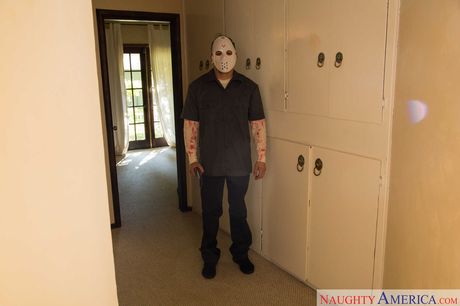 Redheaded mom Britney Amber gets her hairy pussy licked & boned by a trick-or-treater