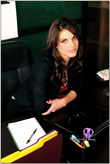 Secretary with tiny tits Bobbi Starr gets her shaved pussy fucked at work