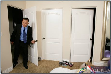 Sexy Asian wife Mia Lelani showing off her big tits and shaved cunt
