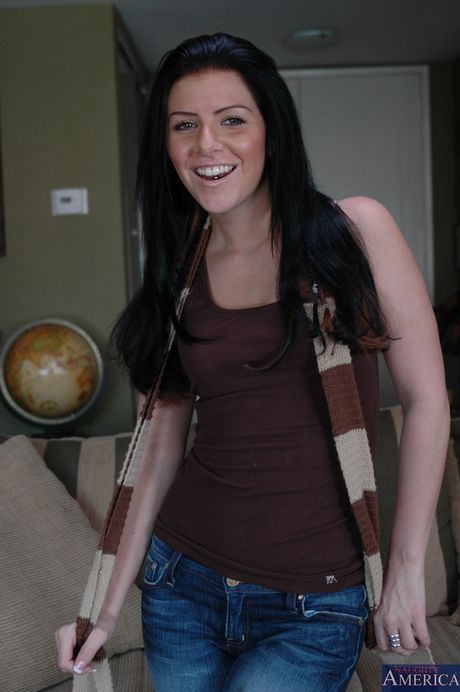Sexy brunette Taryn Thomas strips to her heels and shows her tits