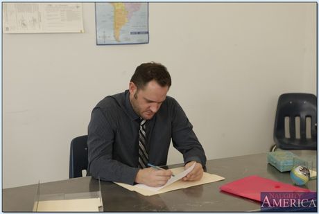 Sexy college girl Ava Jay stripping and masturbating in the classroom