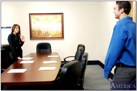 Sexy secretary Nikki Kane strips and shows her tiny tits and pussy