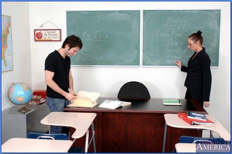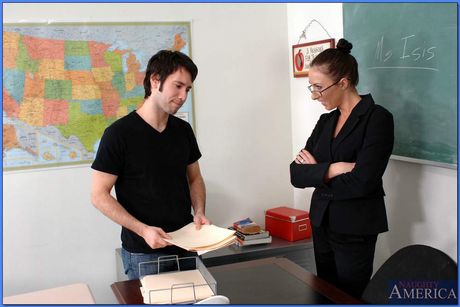 Sexy teacher in glasses Katrina Isis gets her pussy licked and fucked