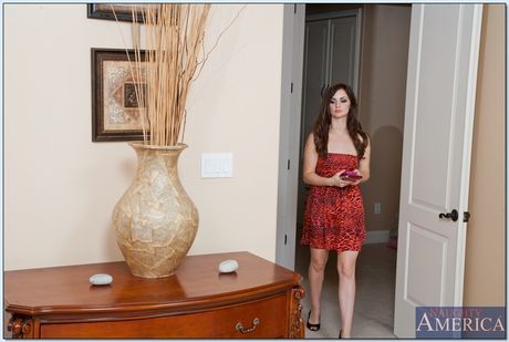 Skinny brunette Lily Carter has sex with her girlfriends son on a bed